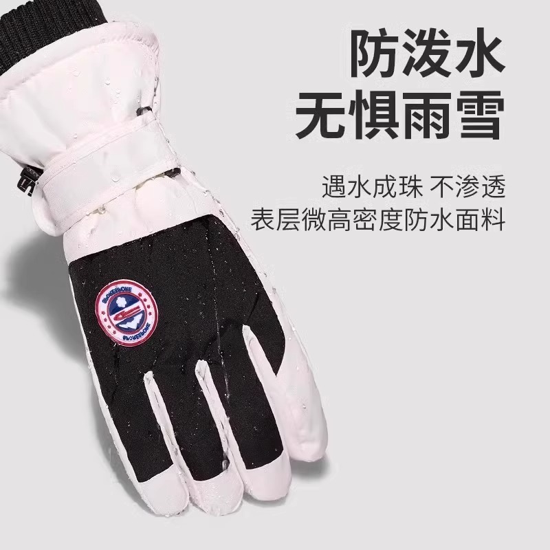 可触屏冬季滑雪手套女男士加绒加厚保暖防风防寒电动车骑行防水