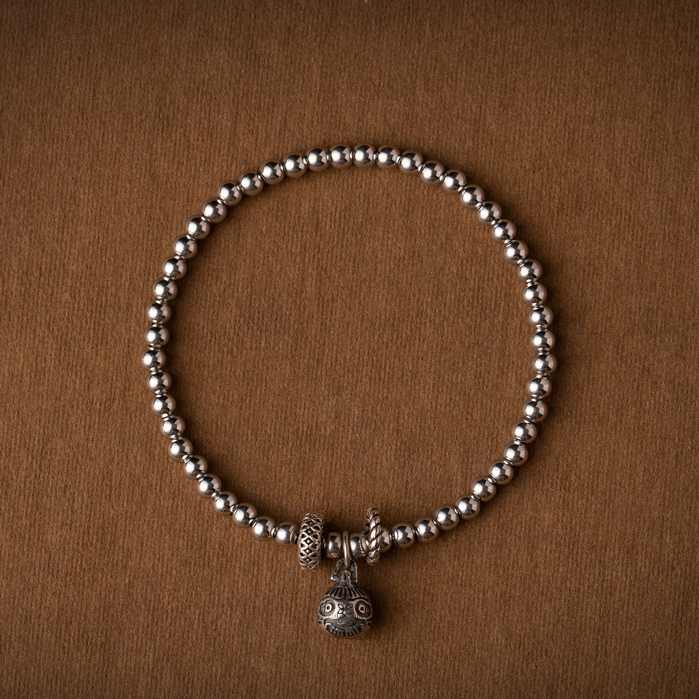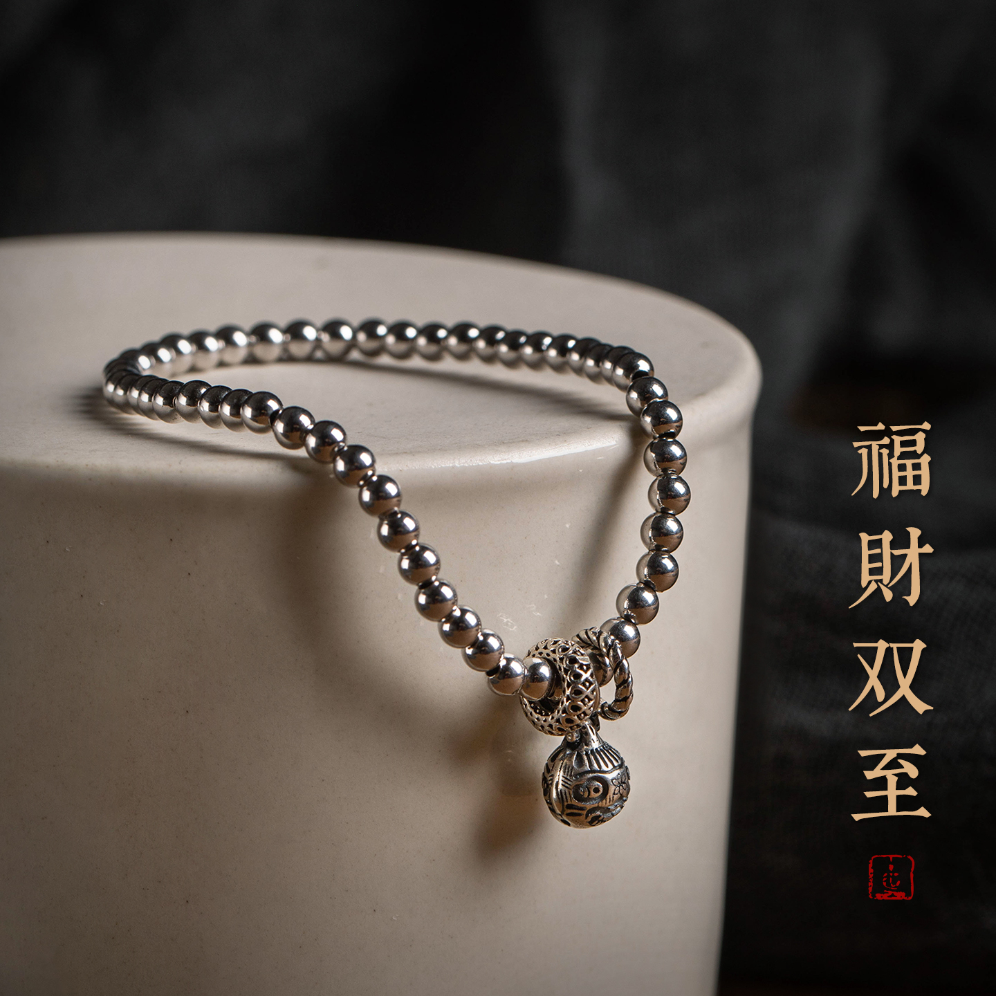 大善堂足银纯银手链新中式吞金兽招财串珠手串古法银饰品百搭礼物