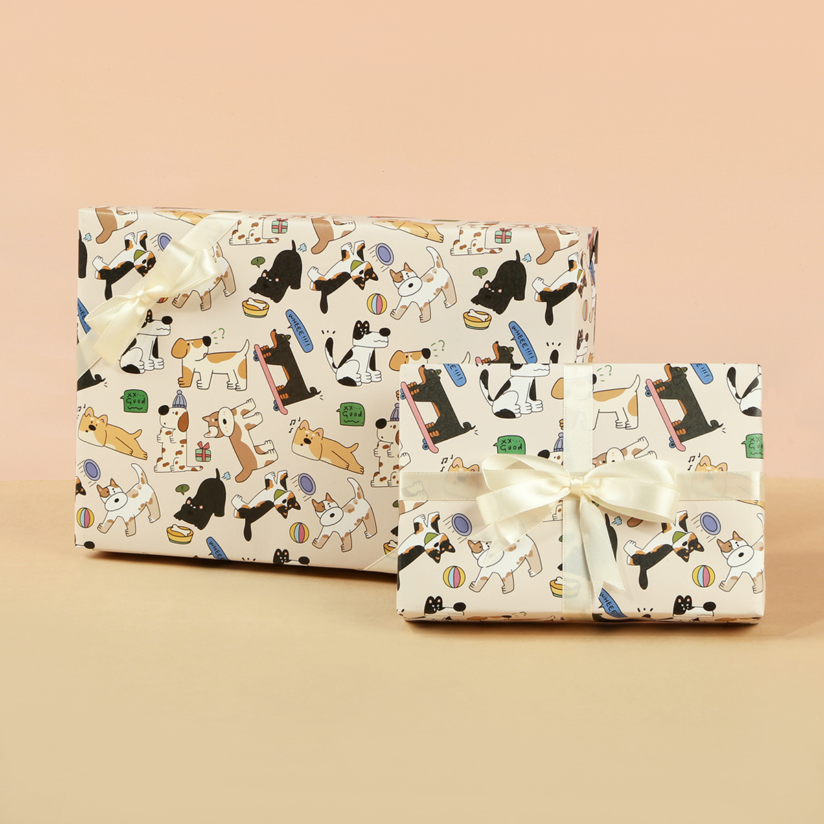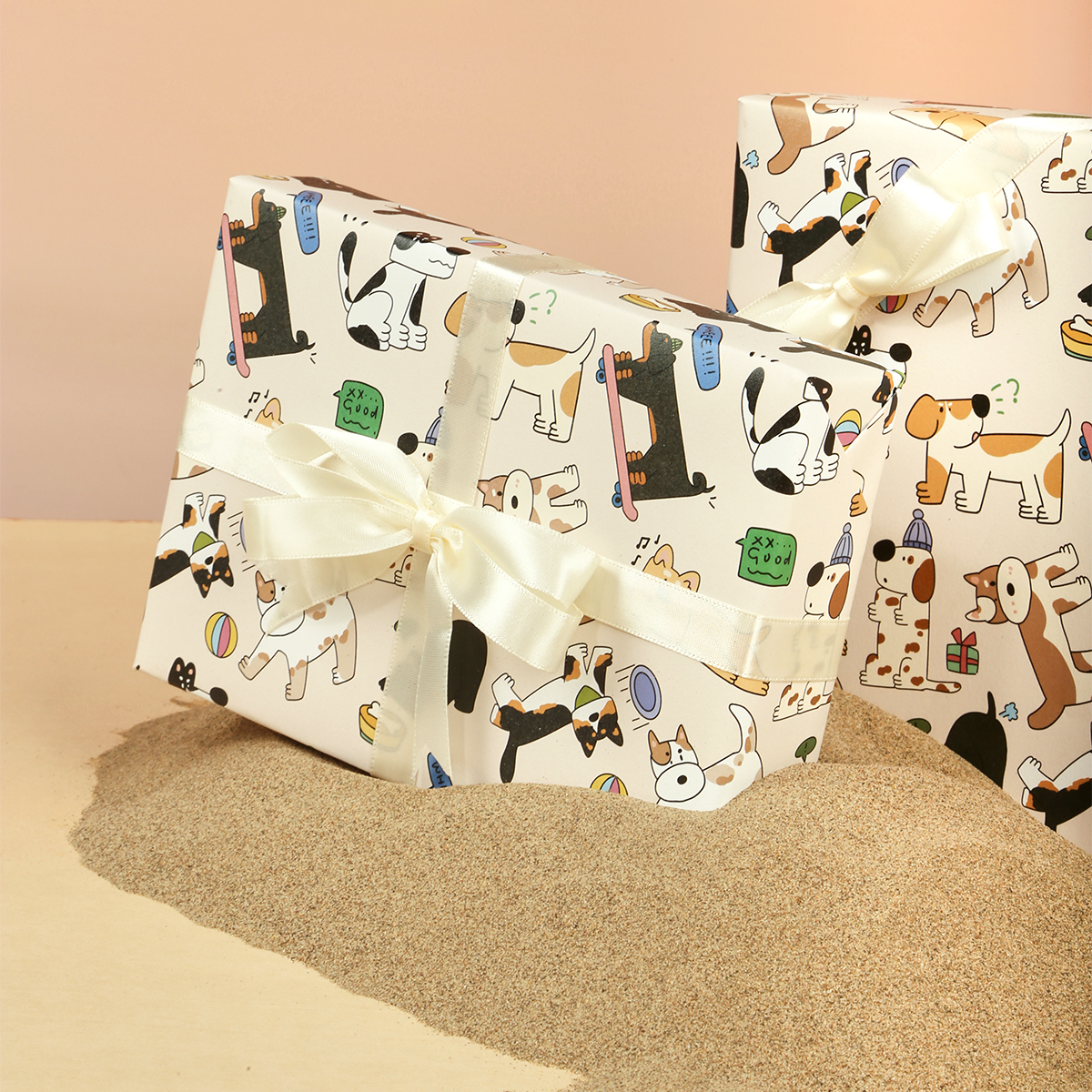 ISUKA一树家|撸汪时光可爱卡通礼物包装纸礼品纸丝带大尺寸情人节送男友生日伴手礼盒高级感包书皮纸DIY彩纸