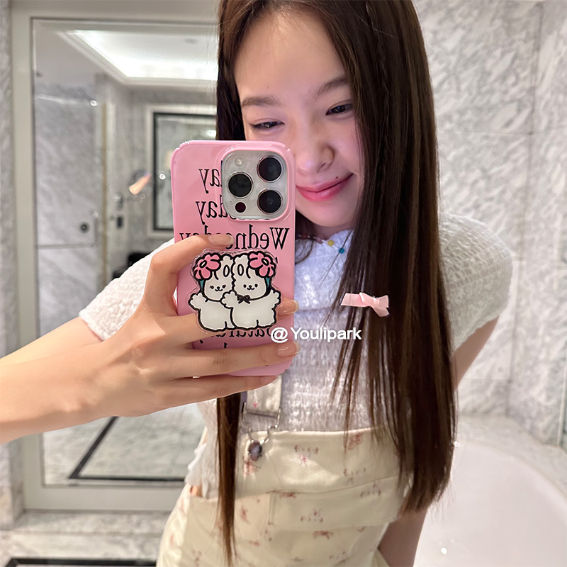 由里公园ins赵露思同款花朵兔子支架适用11苹果15ProMax手机壳iPhone13华为mate60pro/12Pro可爱14Promax菲林
