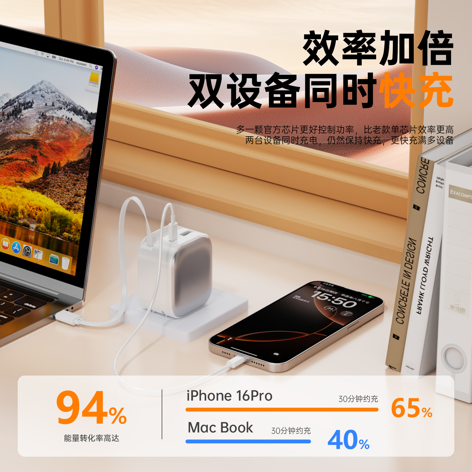 【iPhone17首选】氮化镓充电头快充兼容120W适用于苹果iPhone17/16/15华为快充插头自带伸缩数据线手机充电器