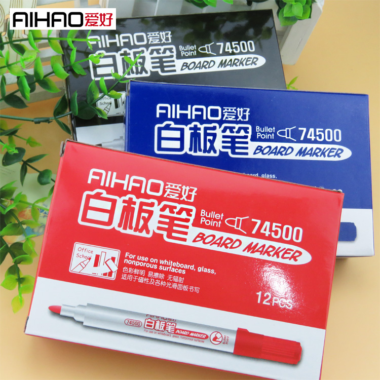 爱好白板笔水性可擦儿童用单头记号笔马克笔粗头黑红蓝办公白板笔