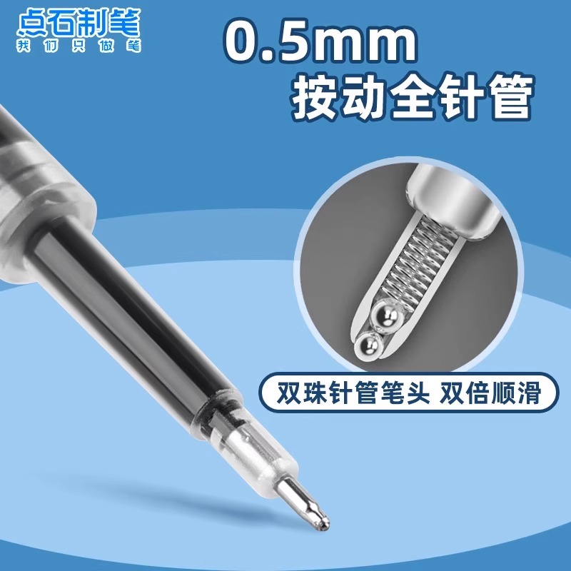 点石制笔按动中性笔替芯双珠针管替芯0.5mm黑色速干大容量顺滑静响控极光闪电时空舱刷题笔黑色芯替芯1156-ZG