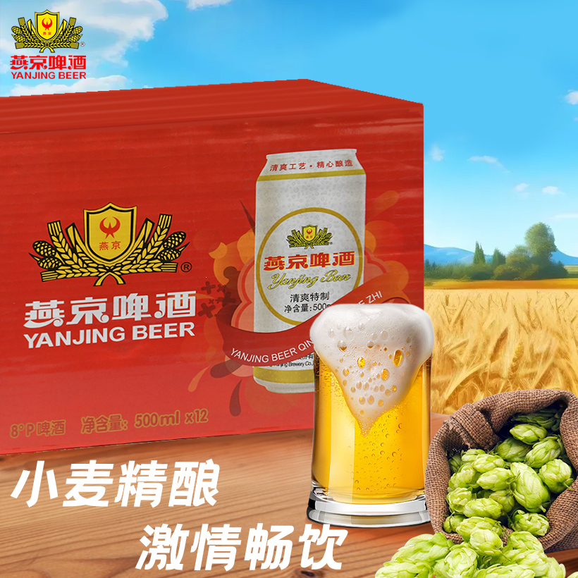 新货燕京啤酒清爽特制500ml罐装白罐啤酒8度听装包邮整箱精酿麦芽