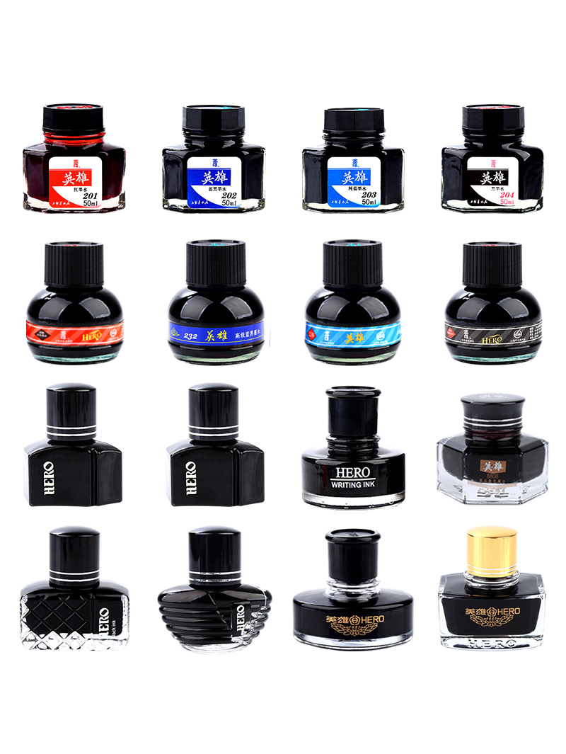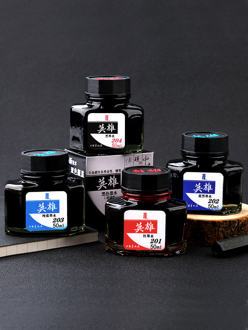 HERO英雄墨水钢笔用204黑色墨水非碳素钢笔水蓝红色墨水无碳不堵