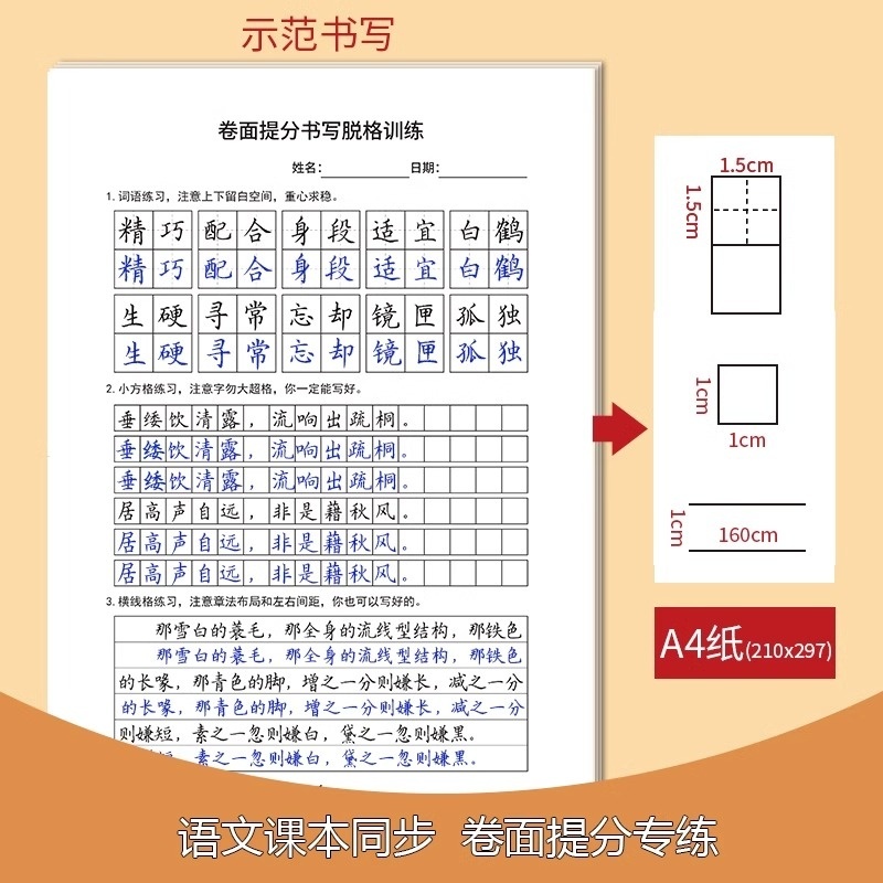 小学一二三四五六年级同步人教版硬笔卷面提分田字格横线格作文格