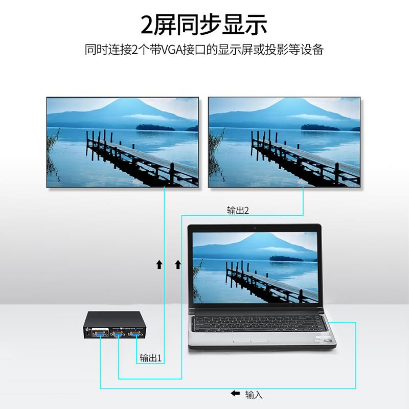 晶华vga分配器一进二出高清视频显示器电脑主机一拖二多屏幕扩展