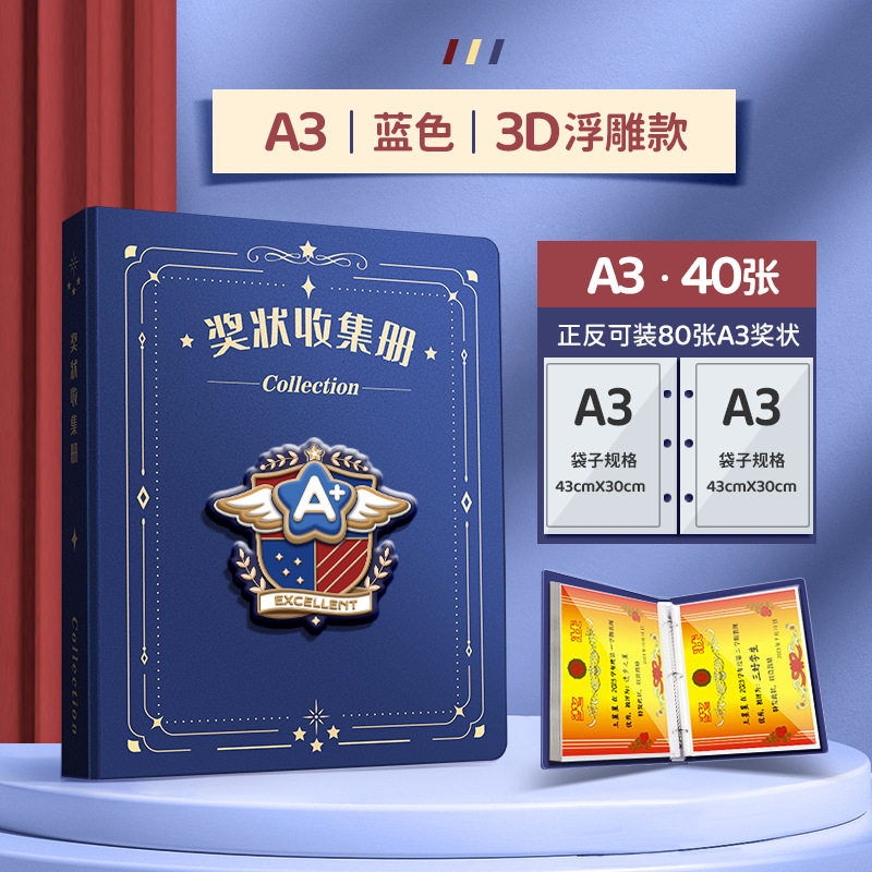 A3奖状收集册3D立体浮雕A4大号荣誉证书收纳画册资料奖儿童活页高颜值幼儿园小奖状大奖状收集册小学放奖状