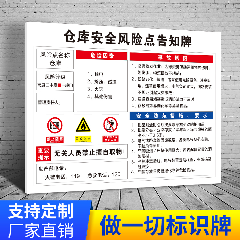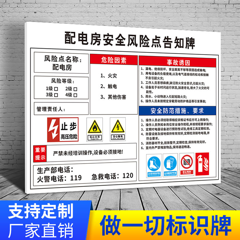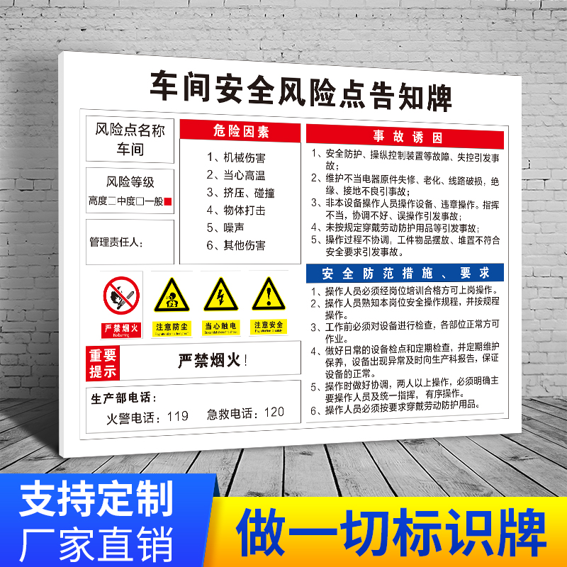 安全风险点告知牌有限空间岗位风险点告知卡锅炉房配电房工厂车间仓库空压机机床行车注全套安全提示牌警示牌