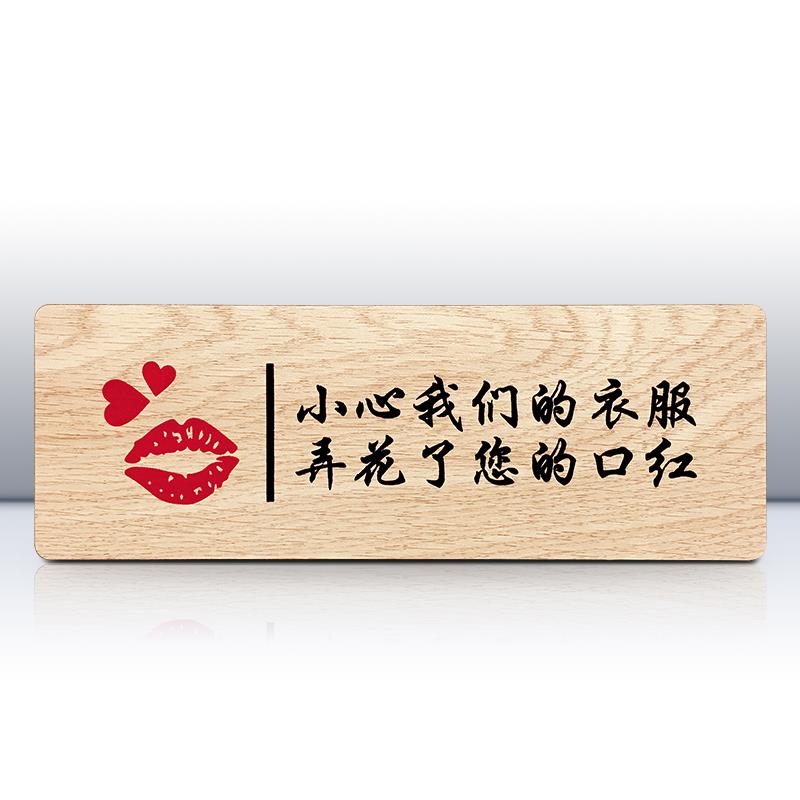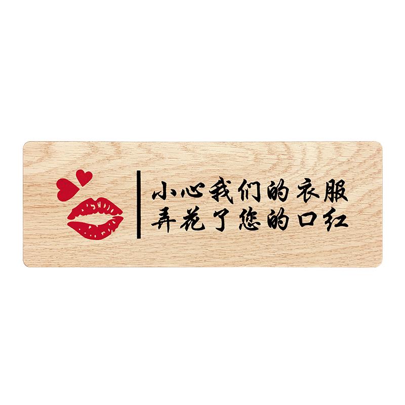 服装店铺试衣间标识牌小心我们的衣服弄花了您的口红温馨创意指示标志提示牌木质标牌男女更衣室洗手间定制
