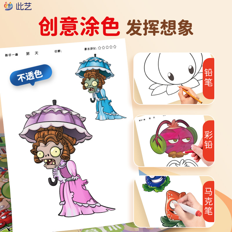 植物大战僵尸动漫线稿游戏漫画描摹本儿童画画涂色本描画图画绘画临摹画册小学生基础入门控笔训练简笔画素描