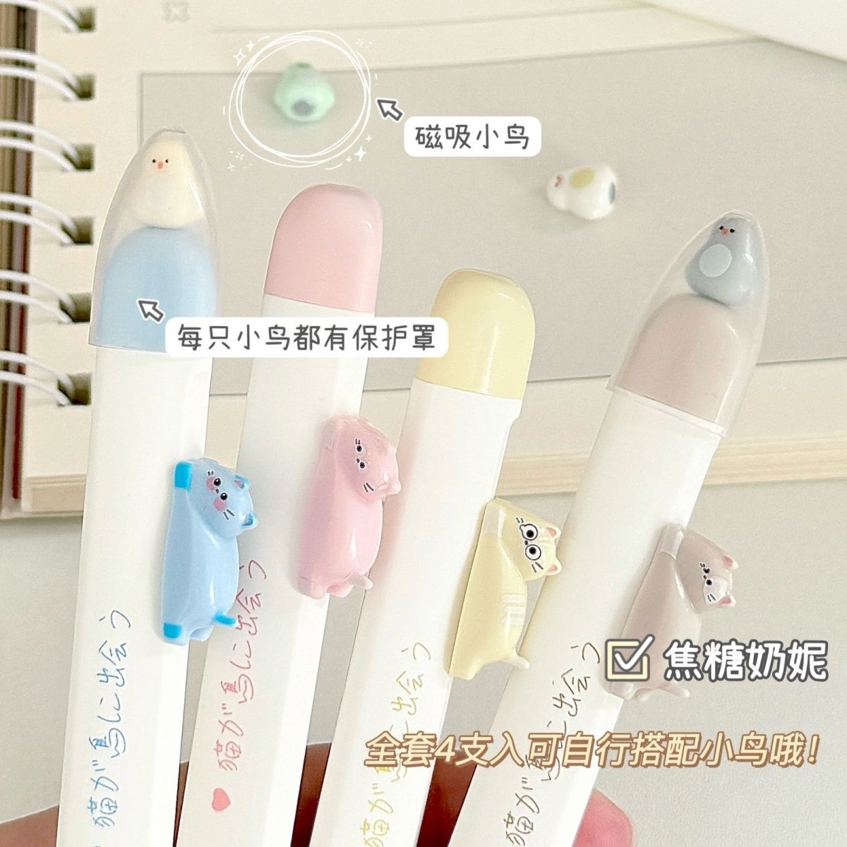 凡物象猫咪物语按动笔ins高颜值速干刷题黑笔创意磁吸小鸟中性笔