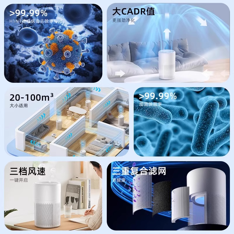 空气净化器二手烟家用负离子净化机吸宠物猫毛除甲醛室内桌面小型