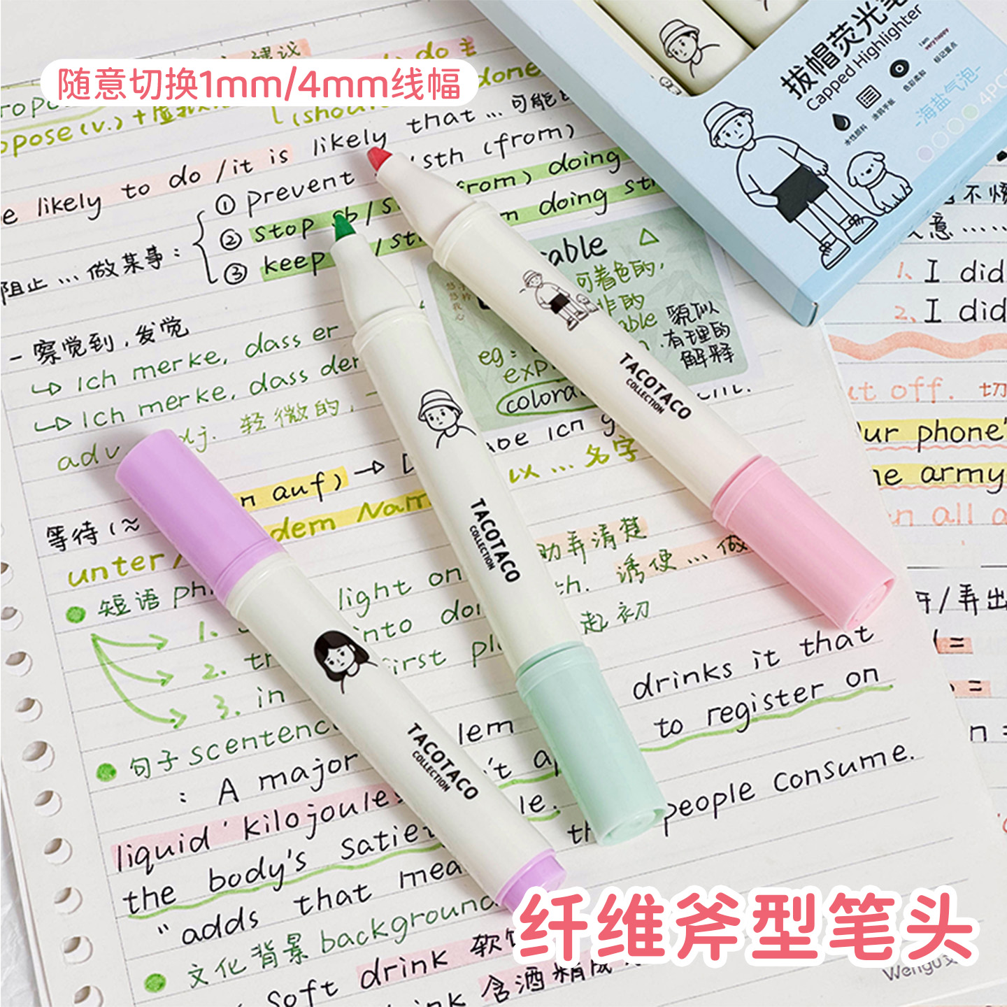 三年二班Taco拔帽荧光笔学生专用高颜值彩色标记笔划重点记号笔