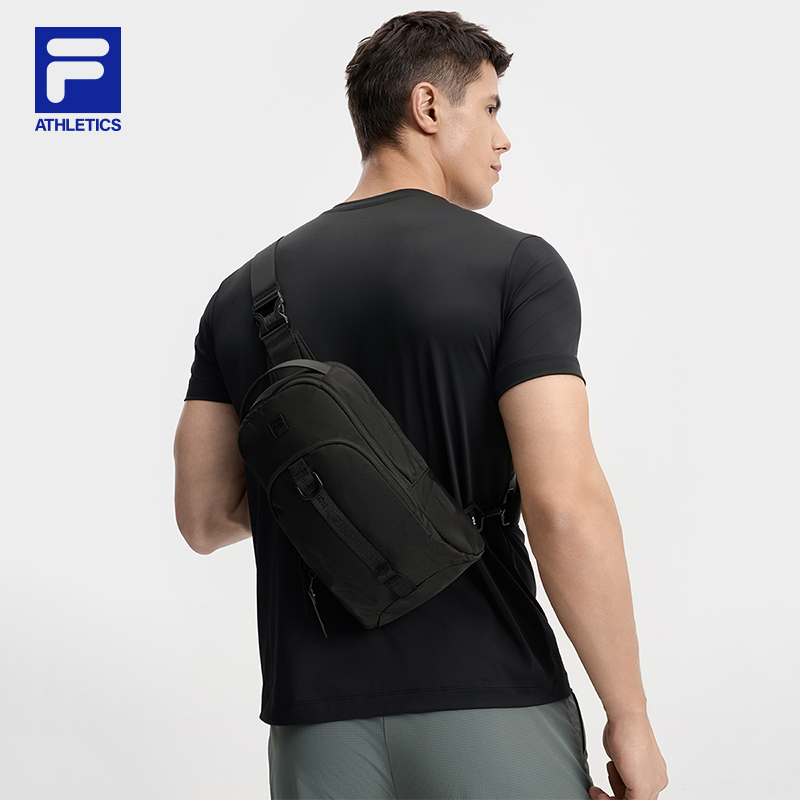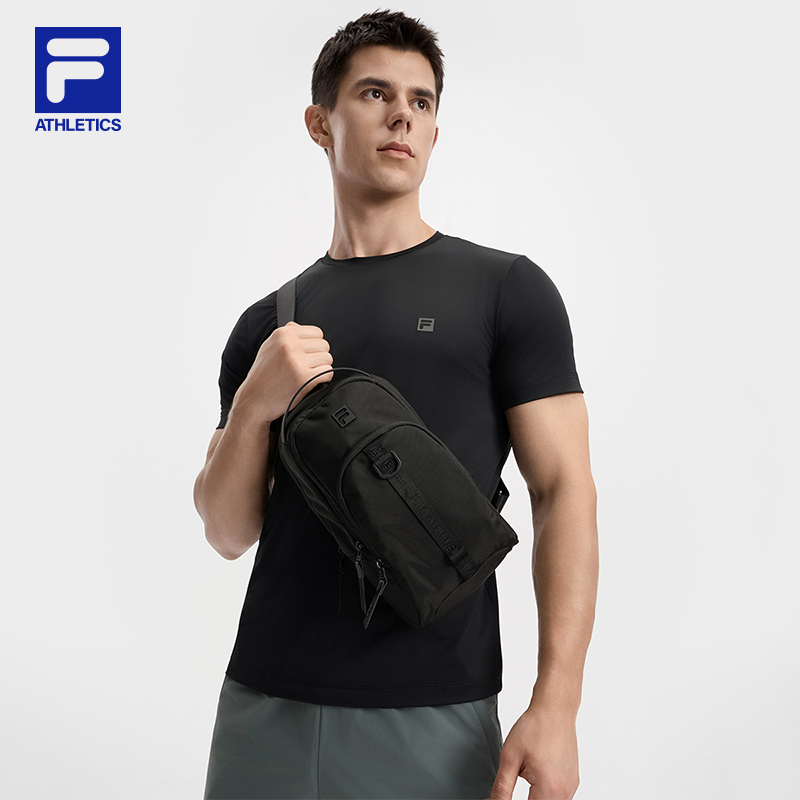 【天行者】FILA斐乐胸包男轻量健身包运动包单肩斜挎包黑色随身包
