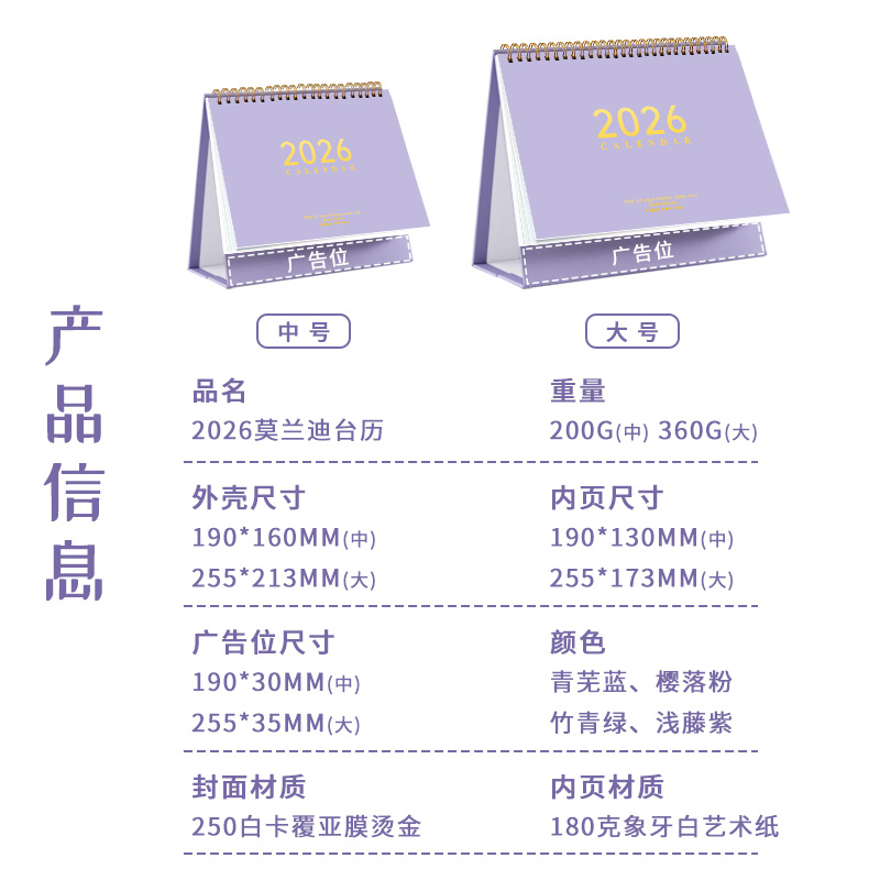 台历2026年新款日历定制logo创意简约小清新韩式办公年历个性中国风桌面摆件商务工作记事计划本订制广告月历