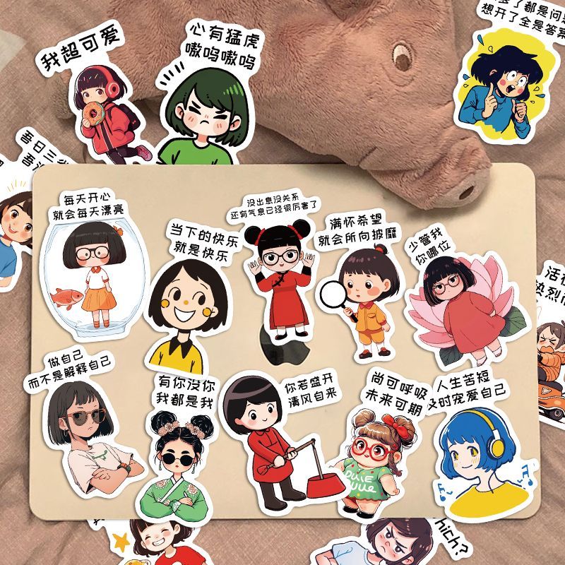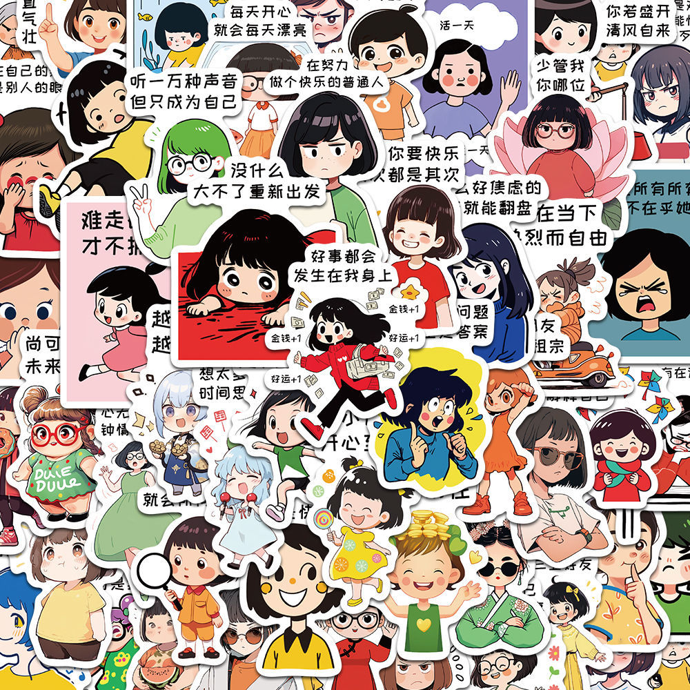 50张乐观语录拒绝内耗文案贴纸创意治愈系装饰diy防水贴画手机壳