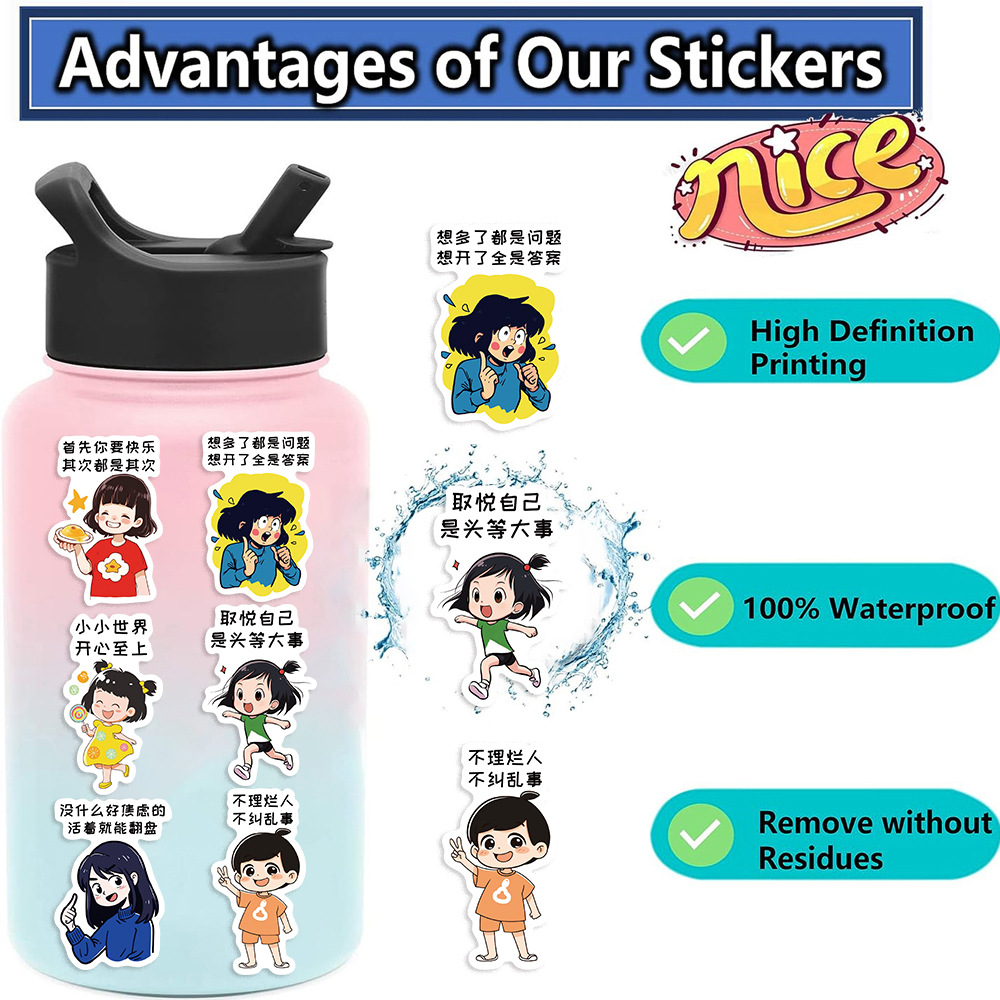 50张乐观语录反内耗文案手账素材贴纸文具行李箱头盔笔记贴画可