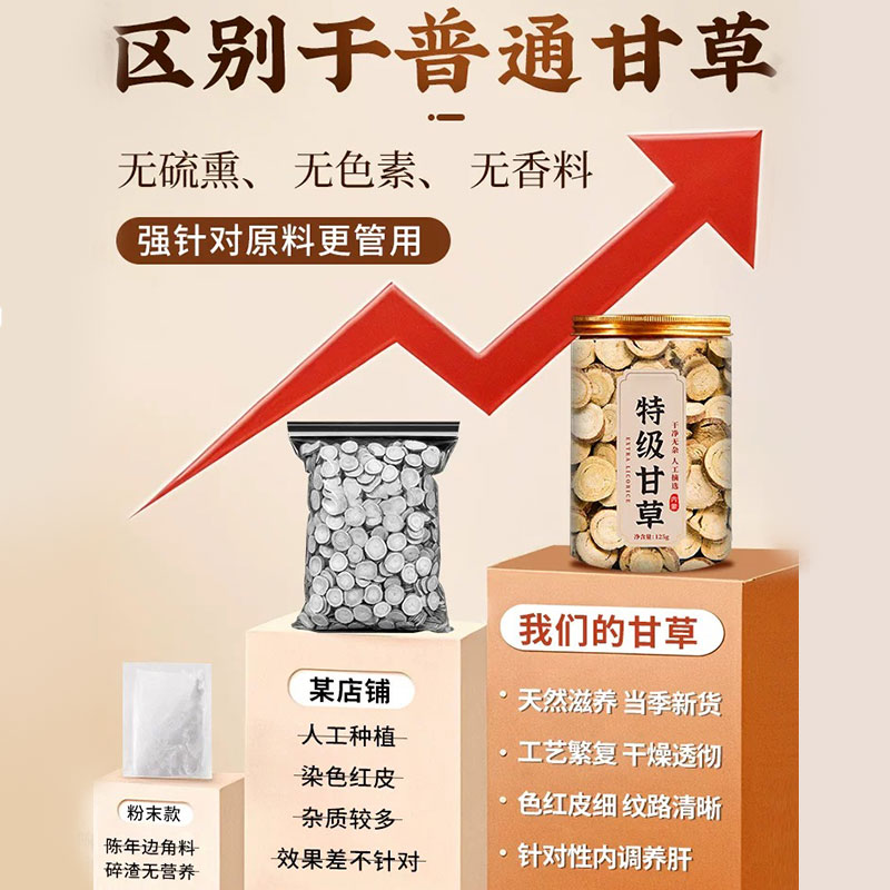 特级甘草片红皮甘草正宗内蒙古中药材干姜泡水喝品官方旗舰店野生