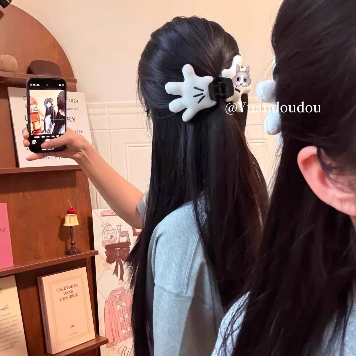 立体趣味米奇手掌抓夹可爱毛绒公仔发爪鲨鱼夹搞怪小手盘发夹发饰