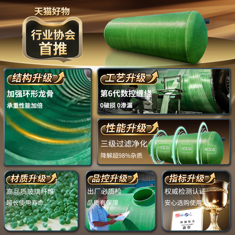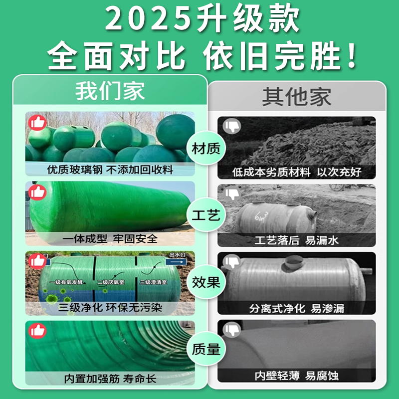 玻璃钢三格化粪池成品地埋新农村专用2/3/5/10立方隔油污水沉淀池