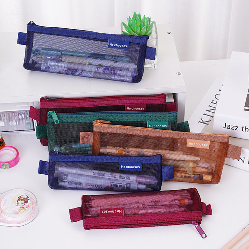 简约透明网纱笔袋复古mini三角大容量铅笔盒文具多功能迷你