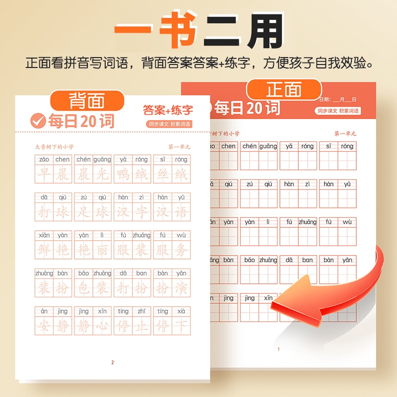 每日20词看拼音写词语一年级下册二年级上册三四五六年级小学语文同步专项训练练习册人教版字词生字注音拼音拼读一练阅读积累组词
