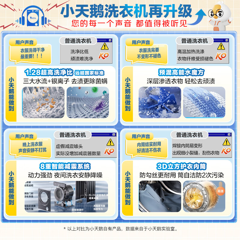 小天鹅洗衣机滚筒家用全自动10KG水魔方1.28高洗净比洗脱一体628T