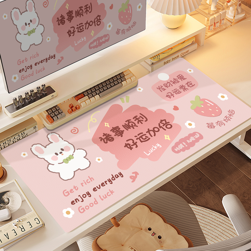 防水皮革文字鼠标垫子女生高颜值电脑桌垫办公桌面键盘垫免洗耐脏