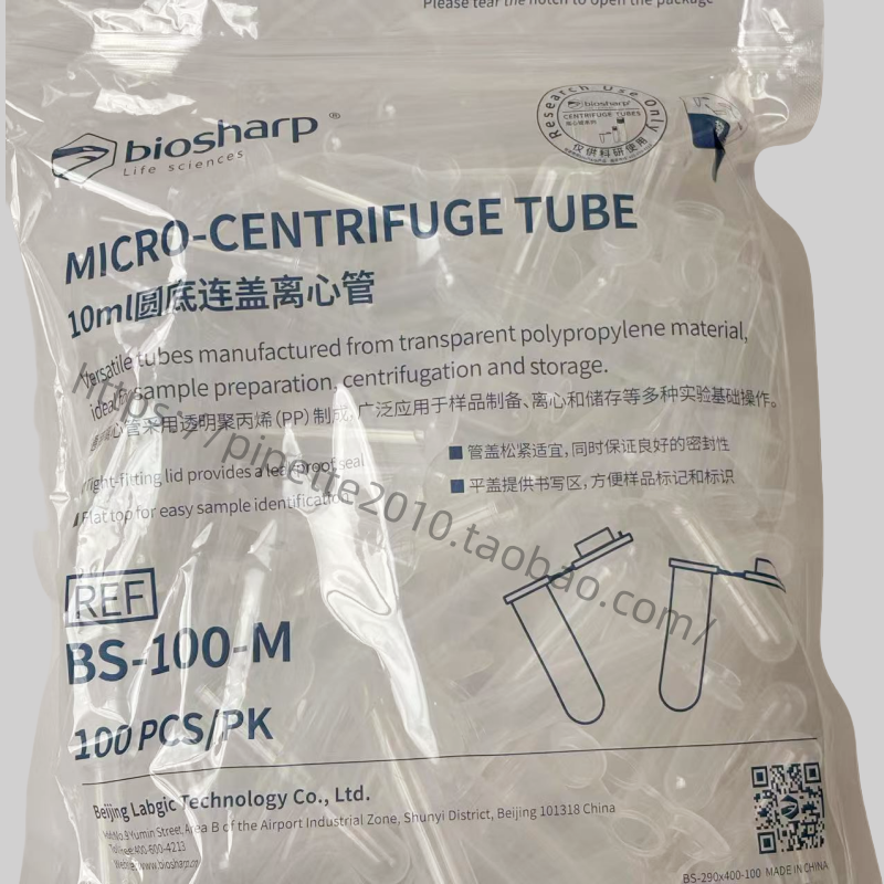 白鲨 BS-100-M 10ml圆底连盖离心管 100根/包