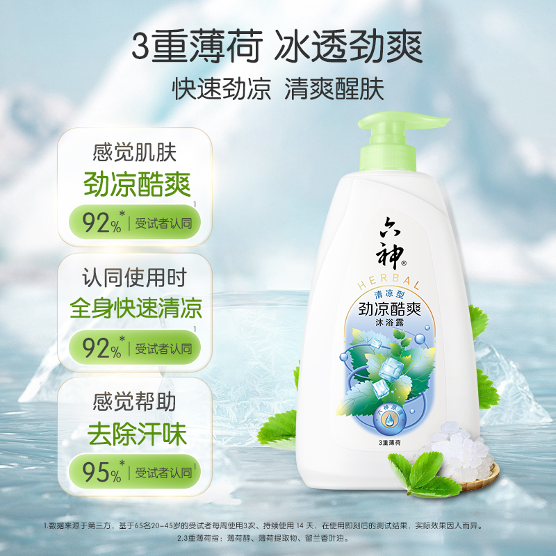 六神劲凉酷爽沐浴露大规格囤货装家庭装保湿不假滑易冲洗男女通用