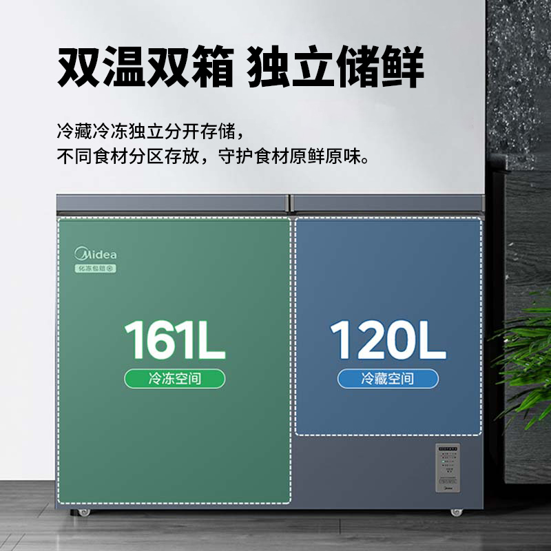 美的双箱双温冰柜281L家用商用冷冻冷藏卧式冷柜一级能效大冷冻柜