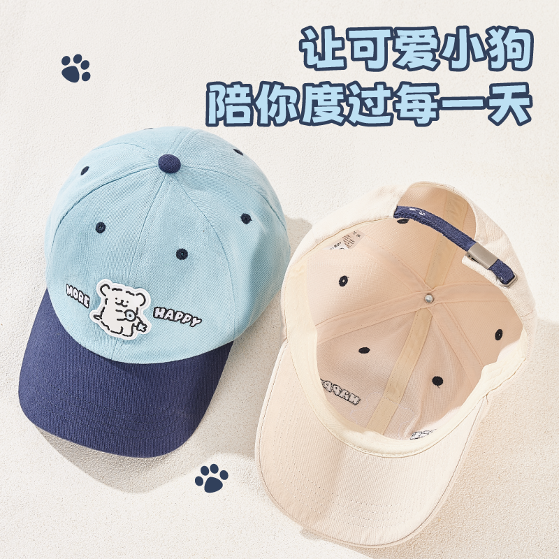 言仓线条小狗棒球帽米白色蓝色韩系氛围感百搭情侣女生生日礼物