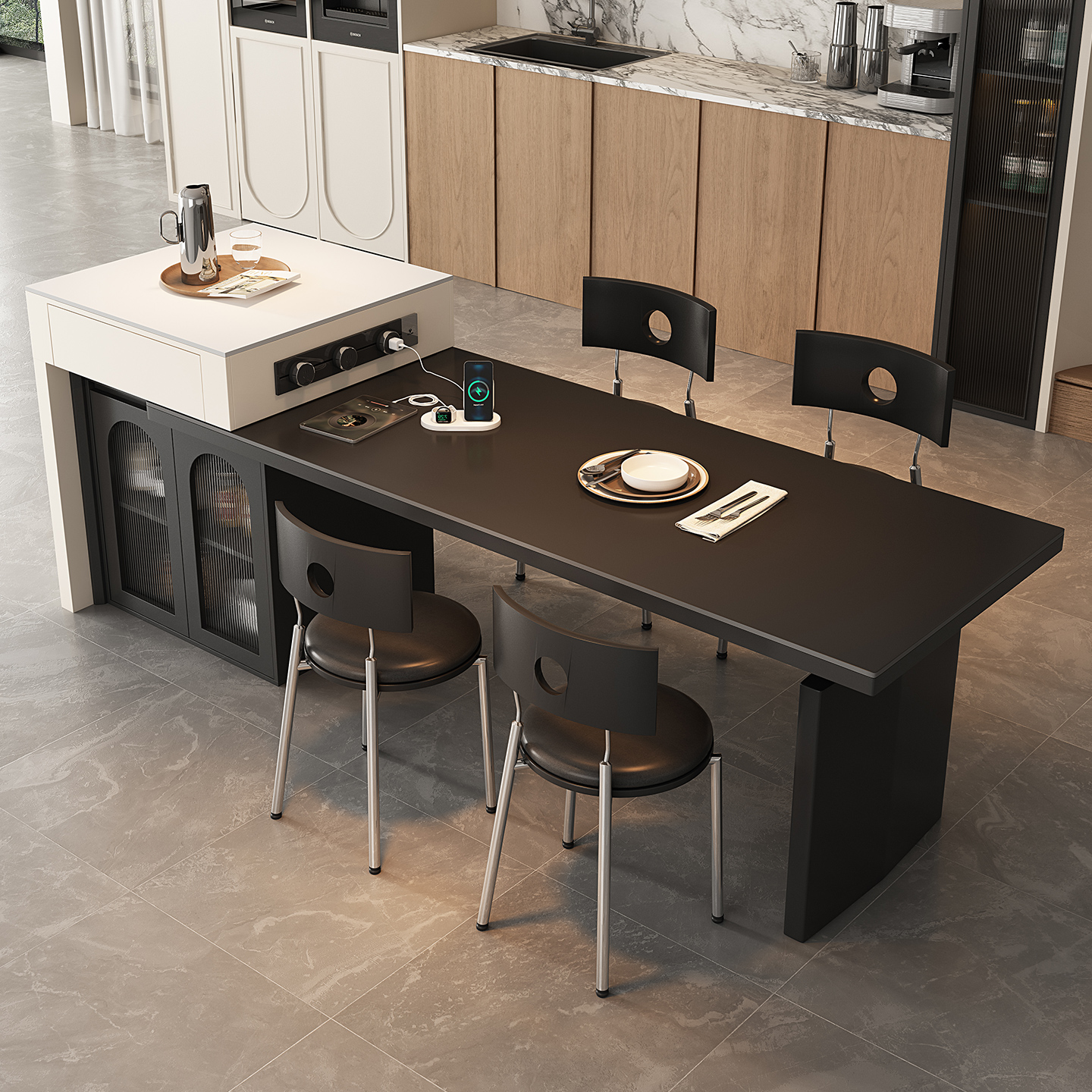 意式极简风餐桌一体家具可伸缩岩板岛台小户型开放式厨房成品导台