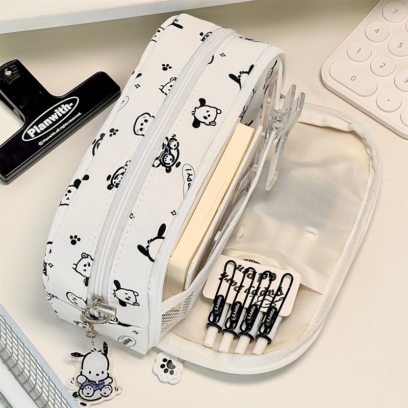 新款日系手掌帕恰狗笔袋ins印花文具盒大容量多功能铅笔盒初中生卡通可爱小狗铅笔袋简约小众卡通文具袋笔盒