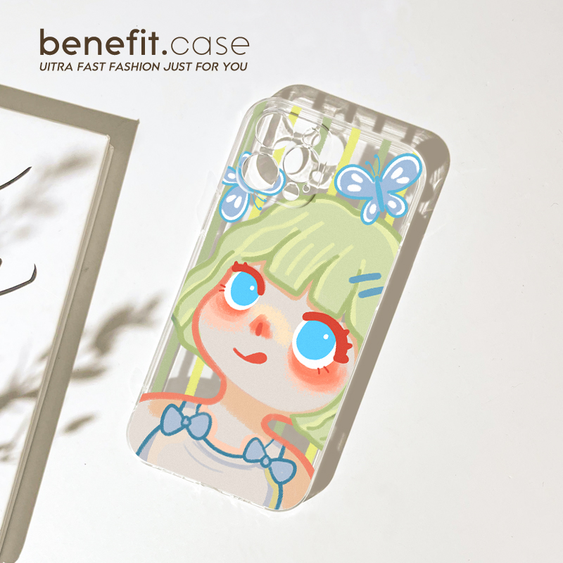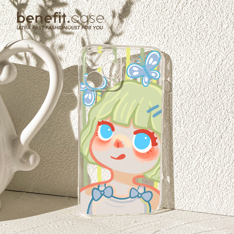 benefit油画日系绿发女孩17适用于iphone16promax苹果15PRO手机壳13新款14套12创意11透明xsmax硅胶xr防摔8p