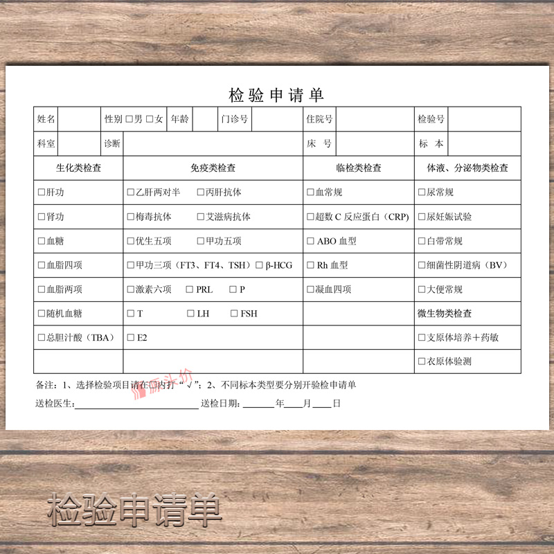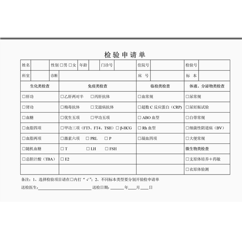 检验申请单据医院科室化验生化免疫分泌物送检住院标本诊断报告表
