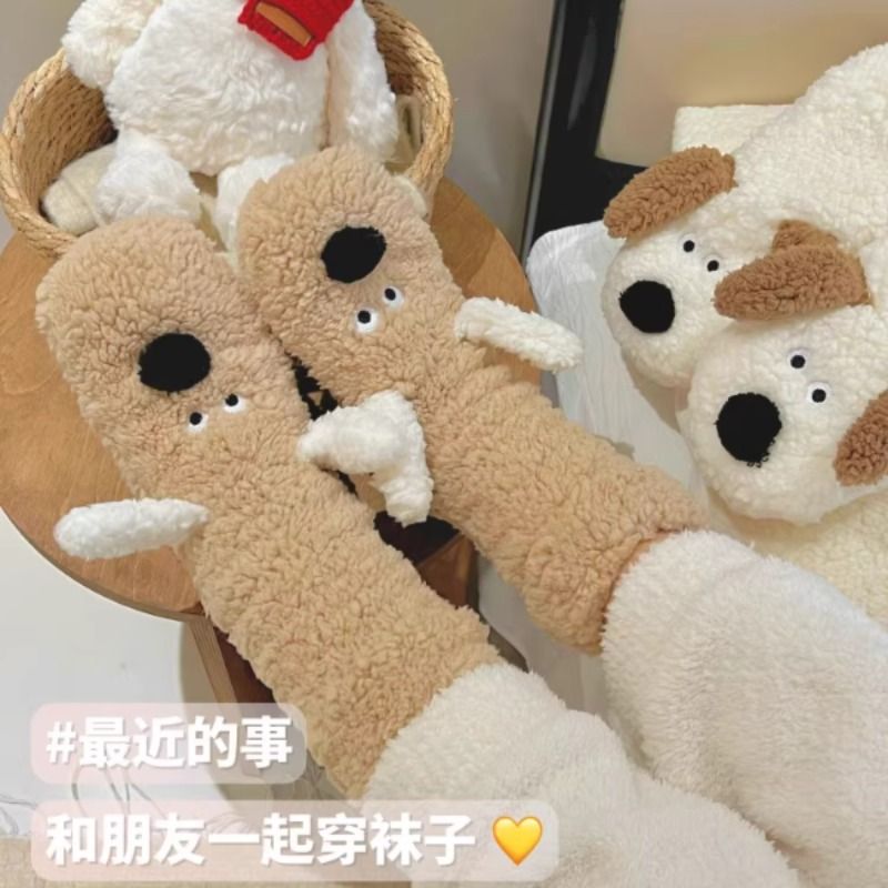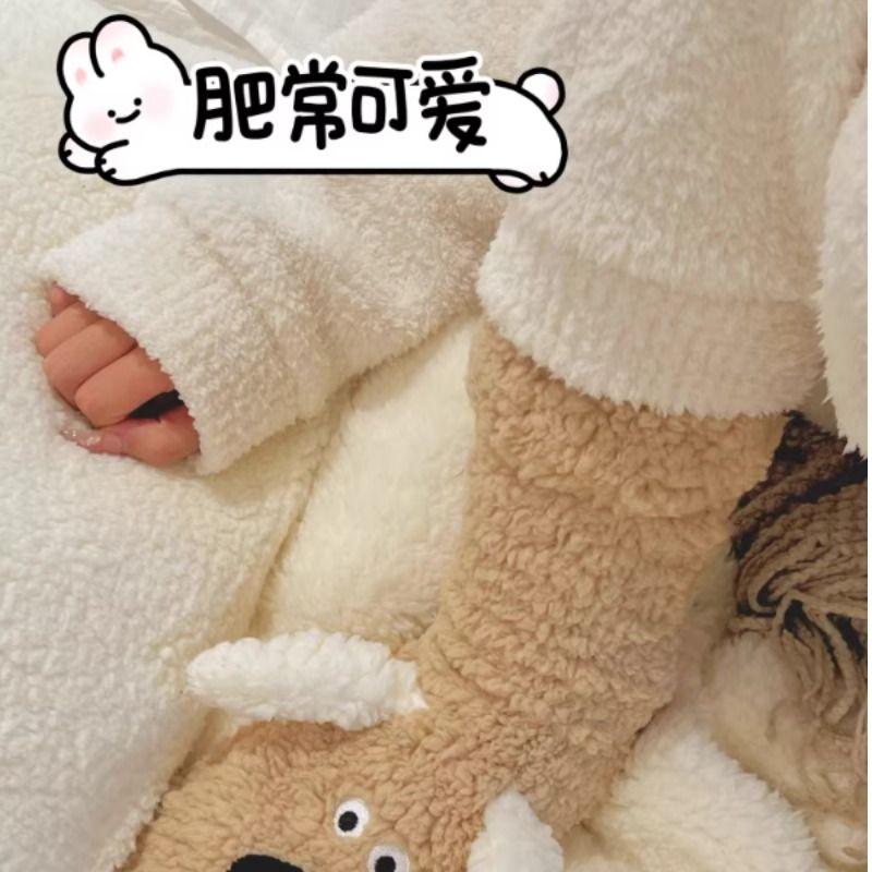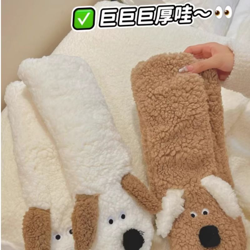 巨厚暖脚神器地板袜子女秋冬季居家长袜加绒加厚保暖可爱卡通黑色