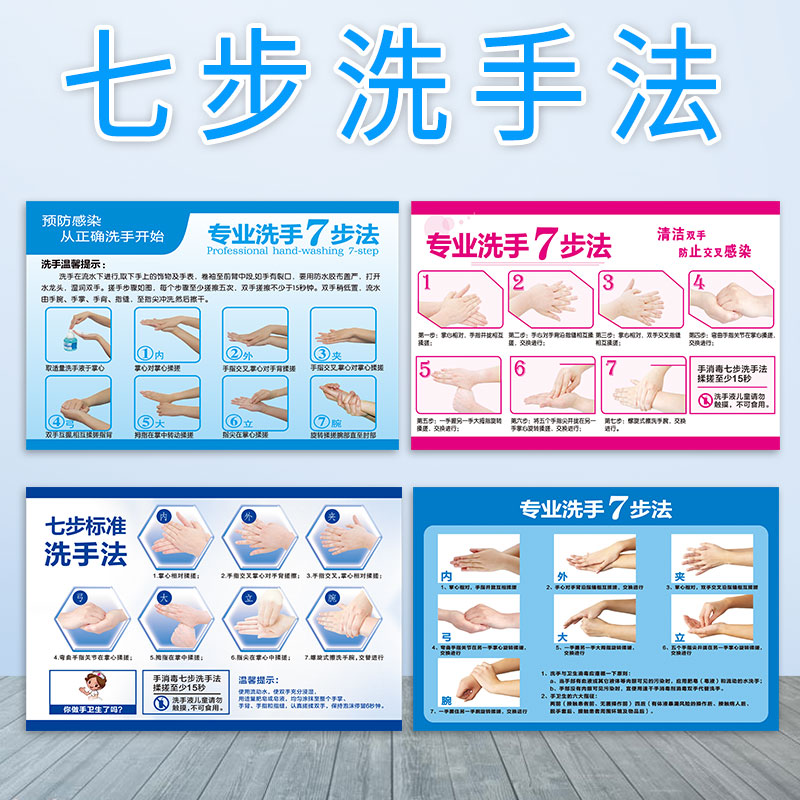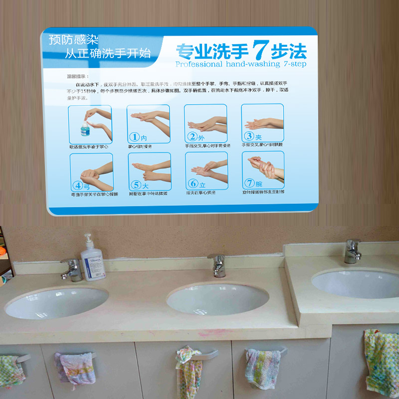 医院七步洗手法墙贴纸防水亚克力标识牌洗手消毒流程图步骤图诊所口腔科洗手池标识牌学校幼儿园洗手示意图