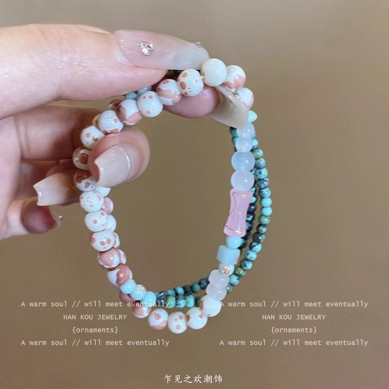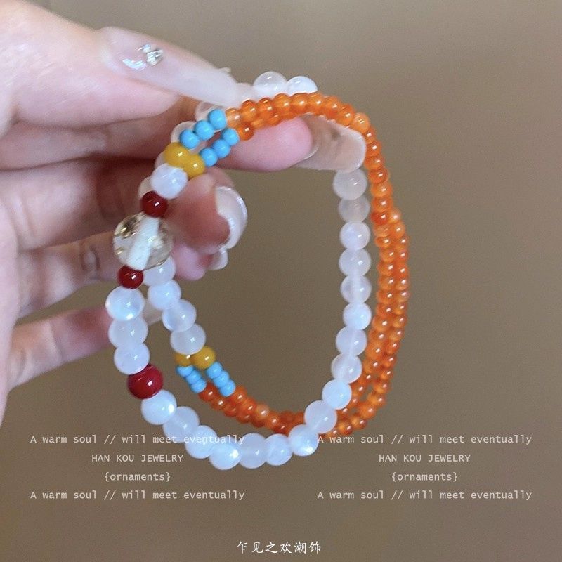 拼色双层叠戴串珠树脂手链女小众设计感精致手串2024年新款手饰