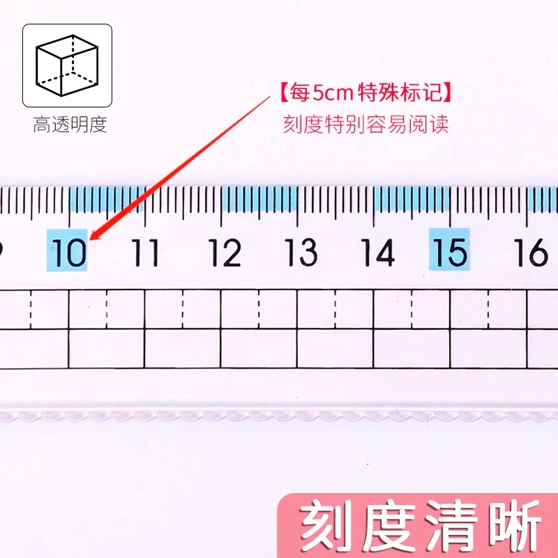 防近视格尺带波浪线直尺小学生专用15厘米文具20cm透明尺子测绘图