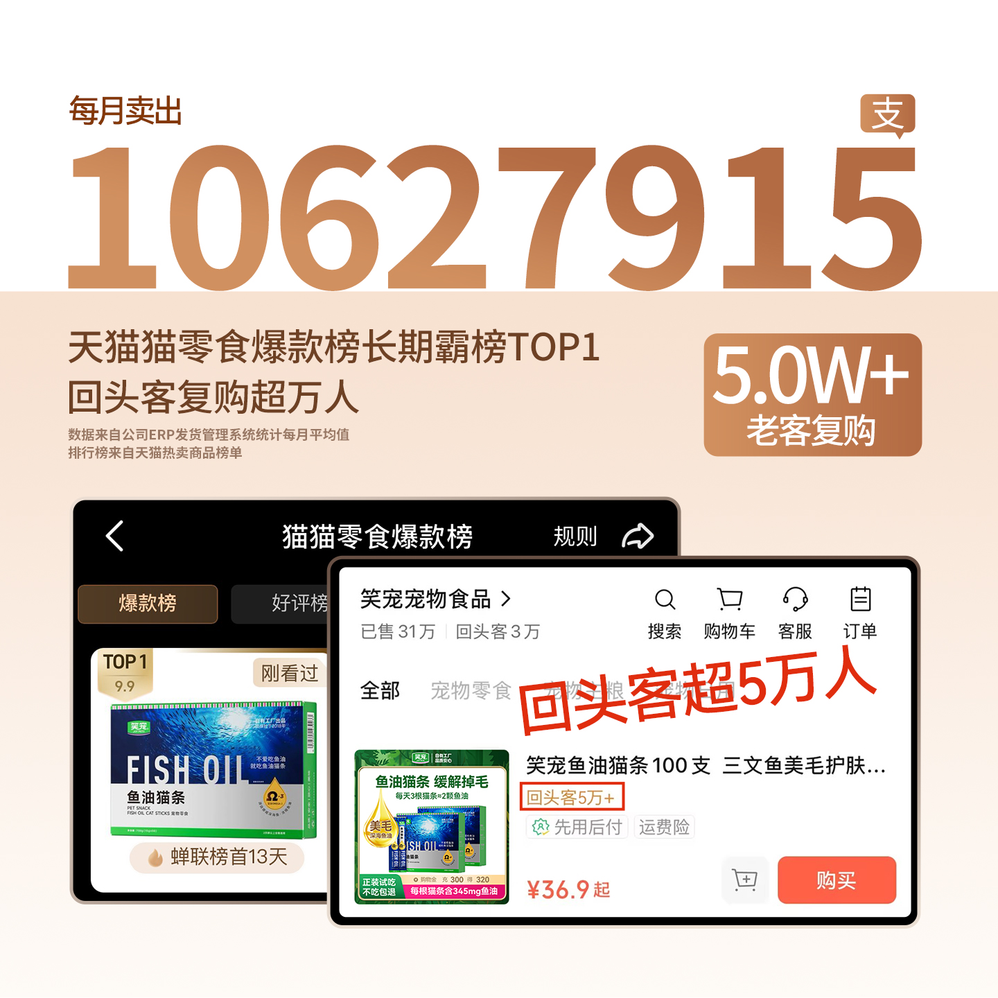 笑宠鱼油猫条猫咪零食猫草防掉毛乳鸽主食级成幼猫排名前十猫条