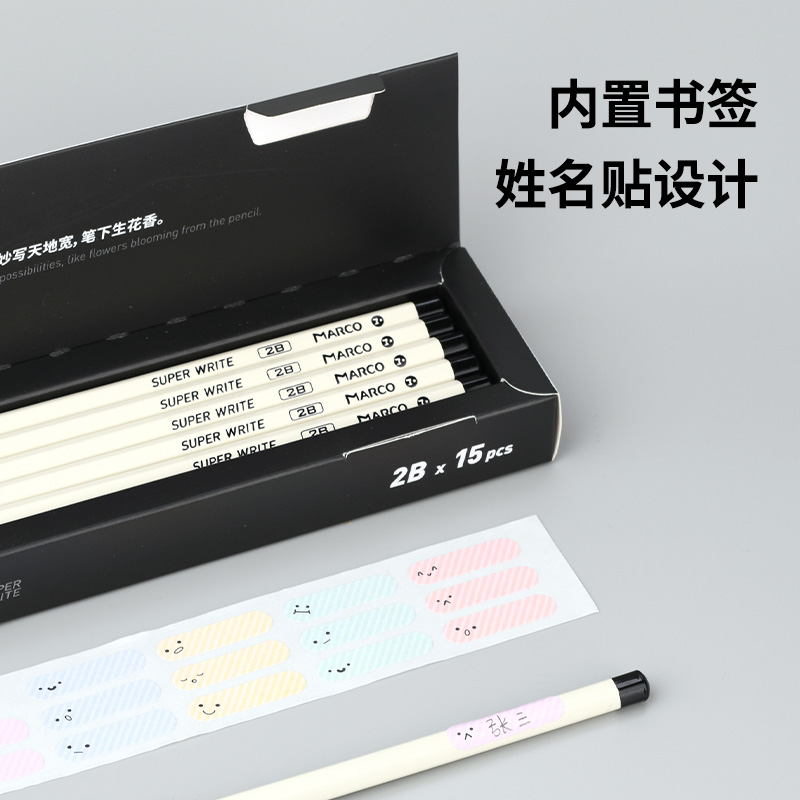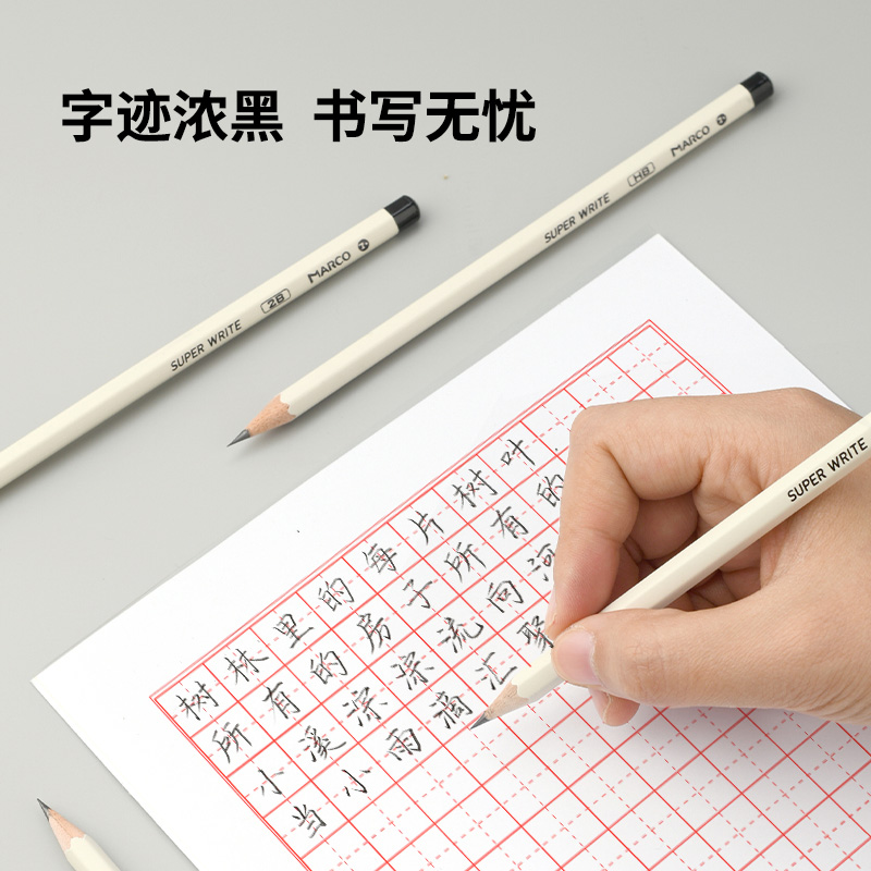 MARCO马可15支小白杆铅笔小学生无铅毒2b考试专用涂卡笔新一年级二年级2比考试铅笔2h幼儿园HB初学者练字笔