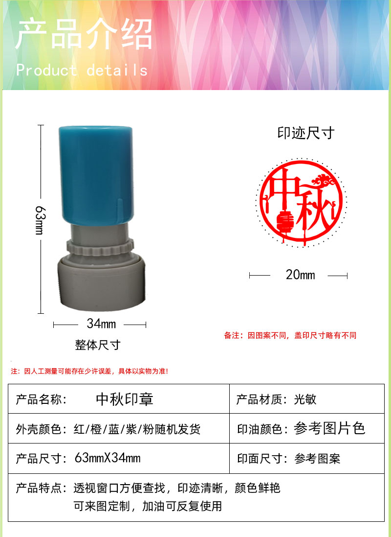 中秋国庆节活动印章卡通儿童可爱图章月饼传统节日来图定创意礼品