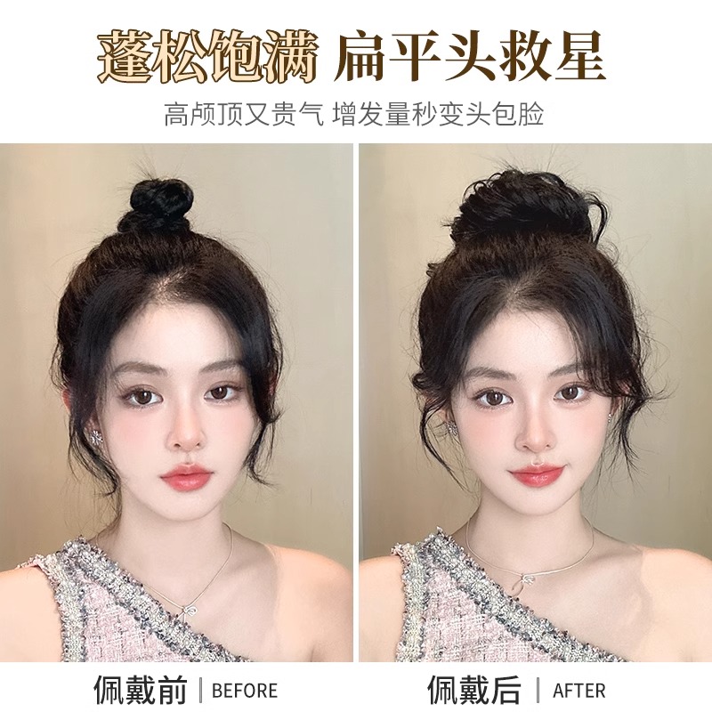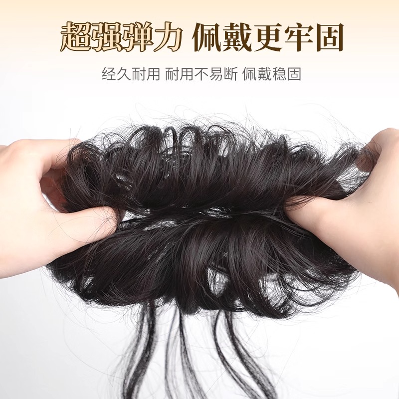 龙须丸子头假发花苞头盘发神器真发发圈高颅顶蓬松假发包千金头饰