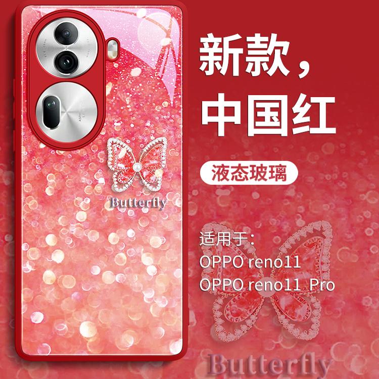蝴蝶适用OPPOreno12手机壳oppo新款11高级reno10玻璃9女reno8的reno全包7防摔pro新品opp0系列6爆款opop秋冬