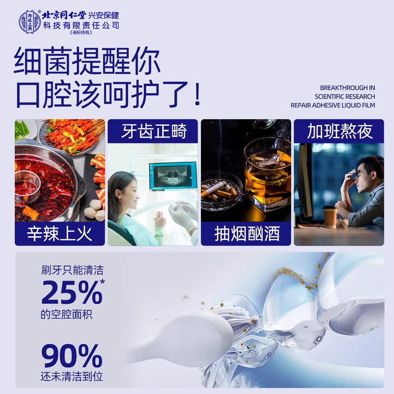 北京同仁堂医用漱口水杀菌除口臭消炎牙周炎牙龈萎缩修复溃疡肿痛