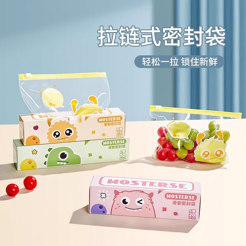 保鲜袋食品密封袋家用冰箱专用冷冻自封袋带封口塑封加厚收纳袋