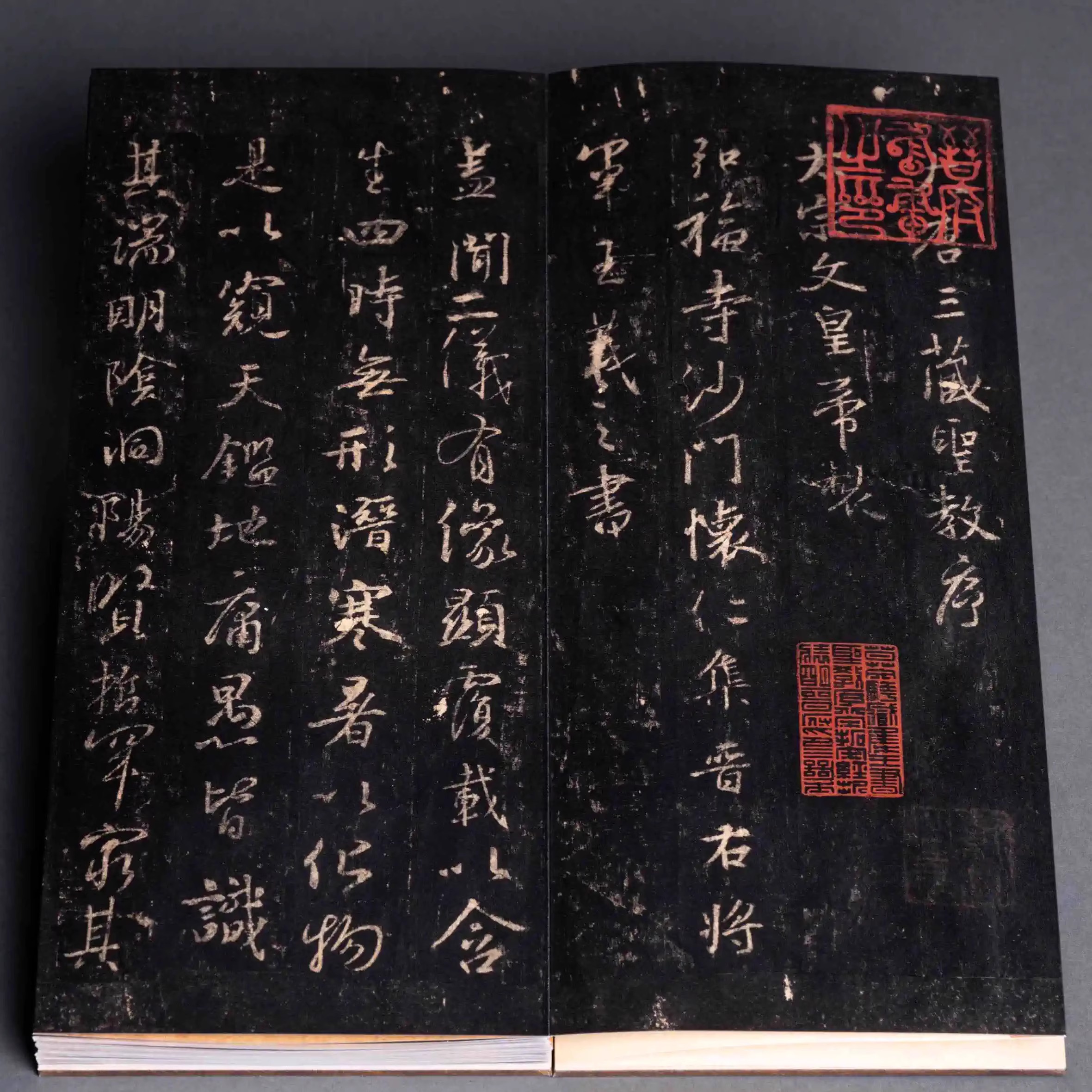 北宋拓唐怀仁集王书圣教序记(明晋府藏本)原拓本之尺寸 色彩装帧 还原制作 封面封底宋锦图案 宋经折装形式 高清扫描 文物出版社