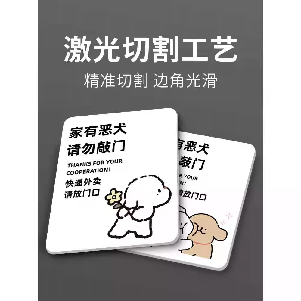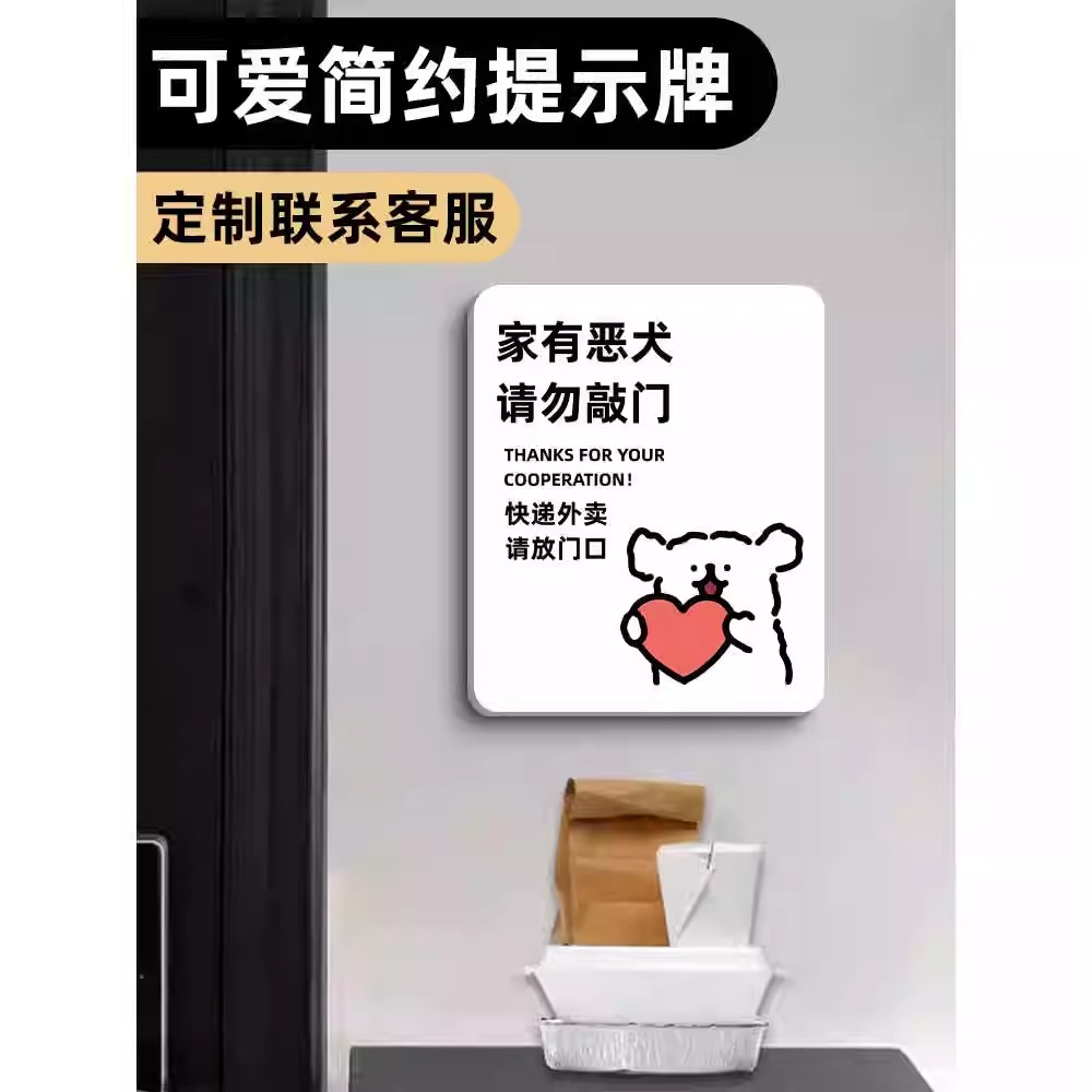 家有恶犬请勿敲门提示牌内有恶犬警示牌快递外卖放门口指示牌可爱门牌创意标语家里有狗不要敲门亚克力标识牌